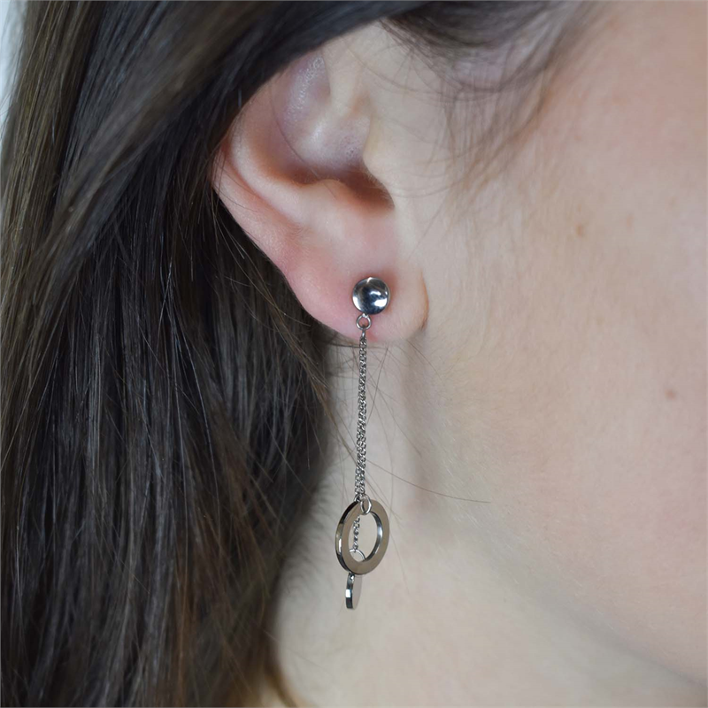 Glanzende oorsieraden van Boccia Titanium uit de Figura collectie. De oorsieraden hebben een afmeting van 15 x 55 mm.