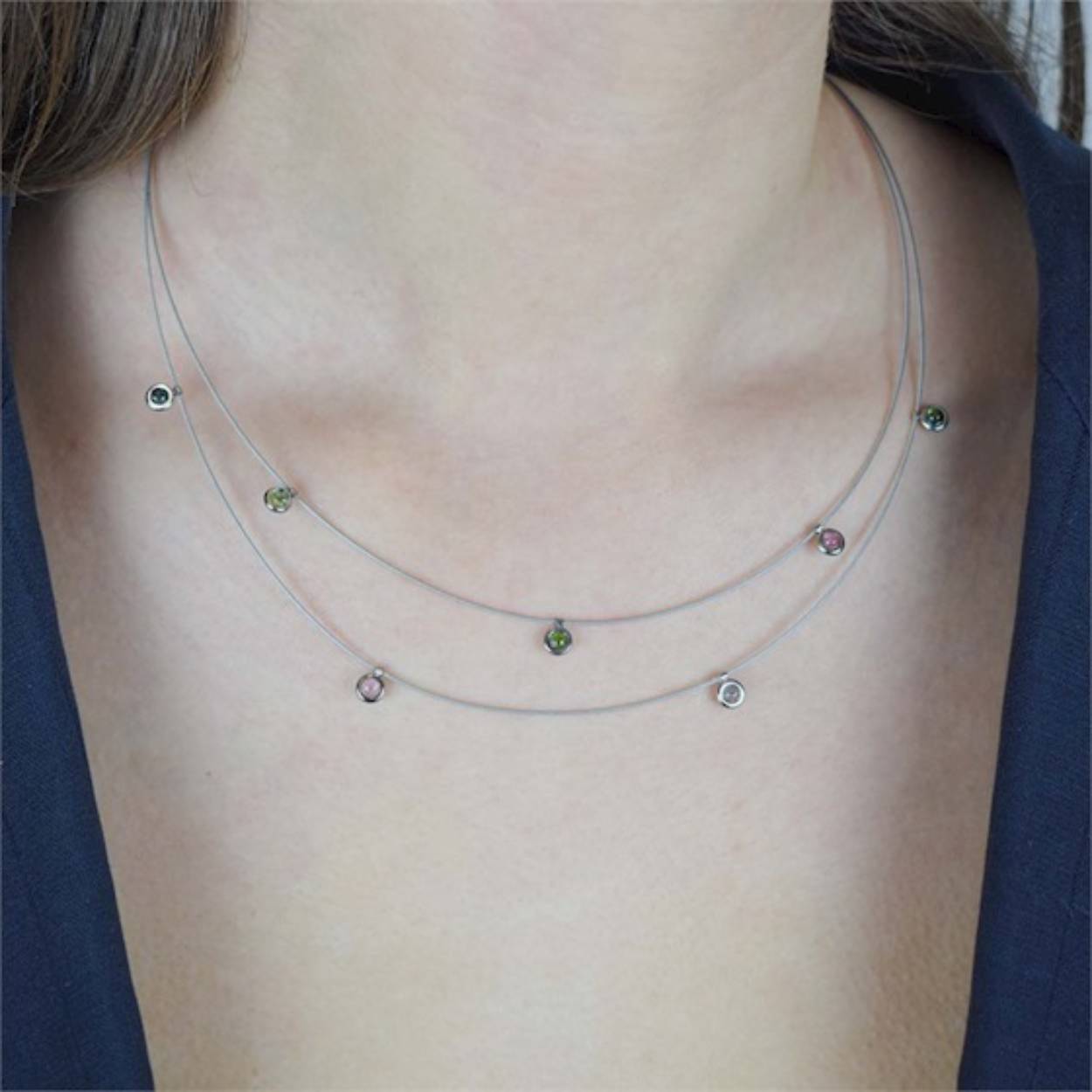 Titanium collier met elementjes van titanium en kleurrijke Toermalijn