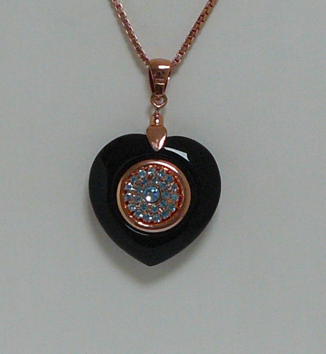 Onyx harthanger met kristal inzetjes. Gratis bijpassend collier.