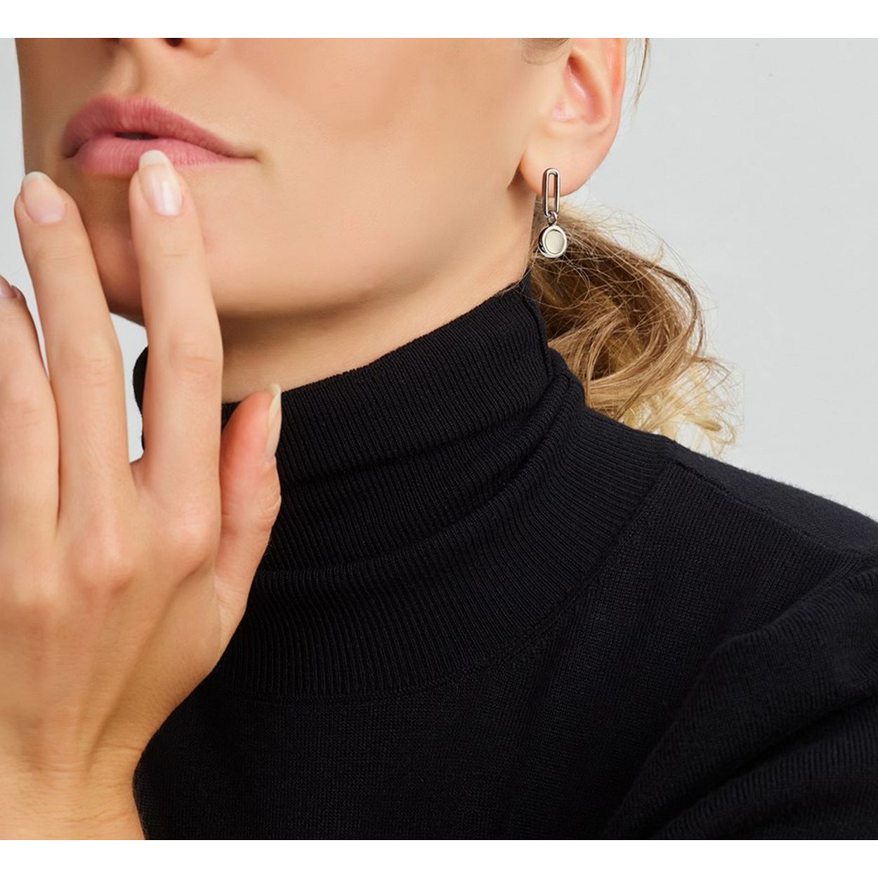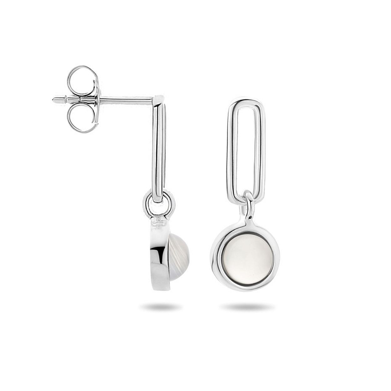 Gerhodineerd 925 zilveren oorhangers uitgevoerd met een schitterende wit chalcedoon. De oorhangers hebben een totale hoogte van 2cm en een breedte van 7mm.