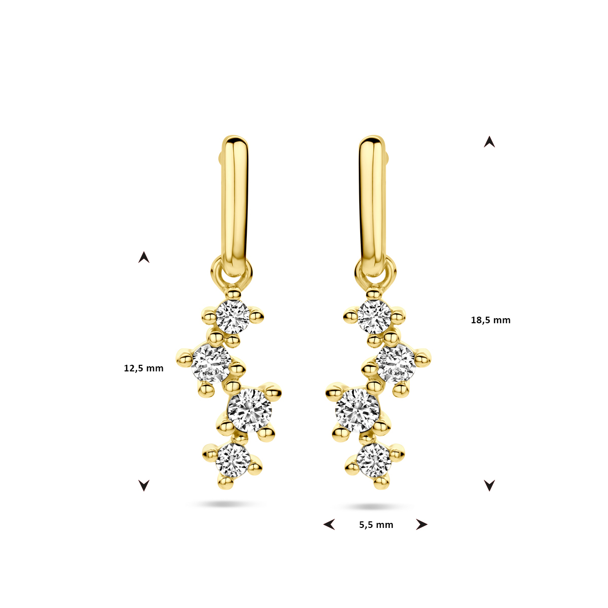 Gouden oorknoppen met 4 Zirkonia's in chatonzetting