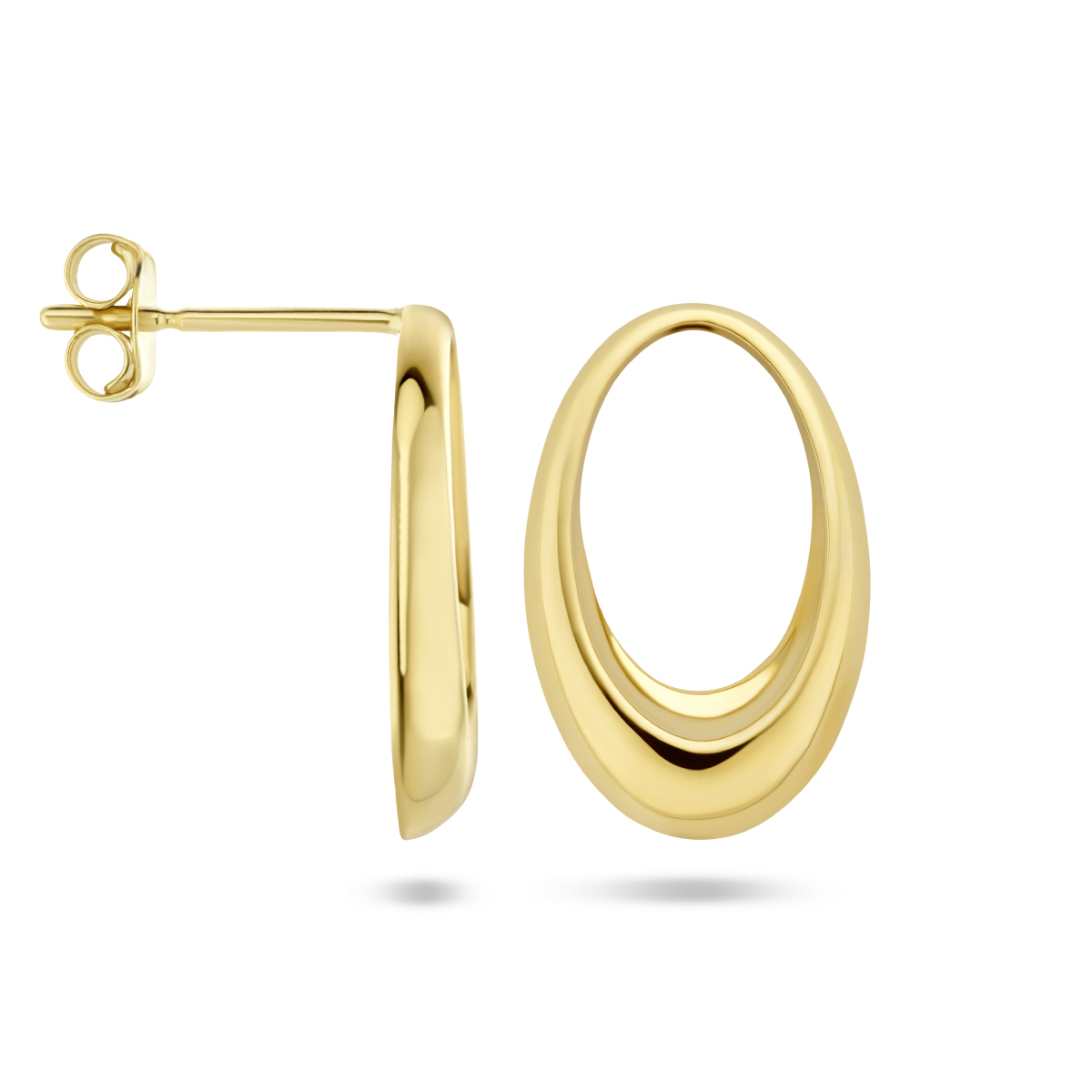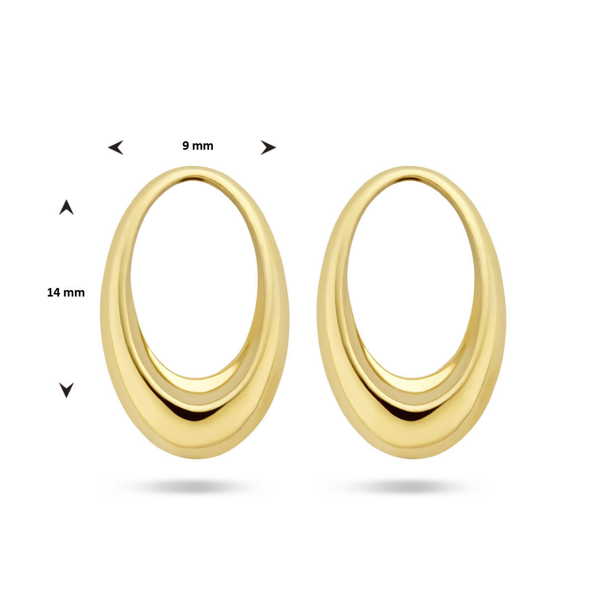 14k Geelgouden ovaalvormige oorknoppen met een afmeting van 14x9mm. Glad
