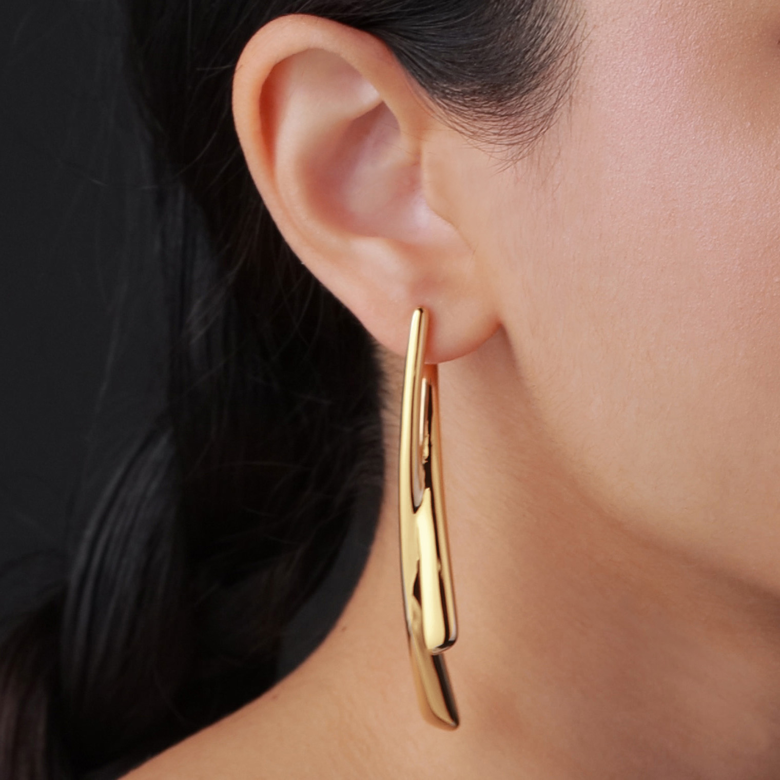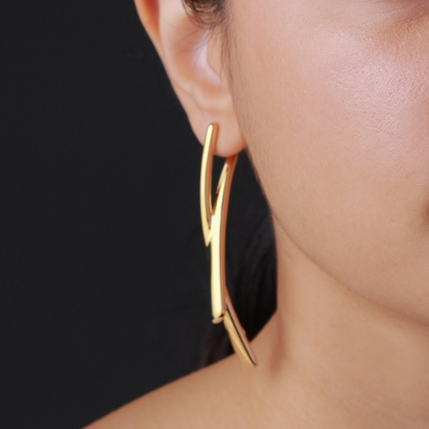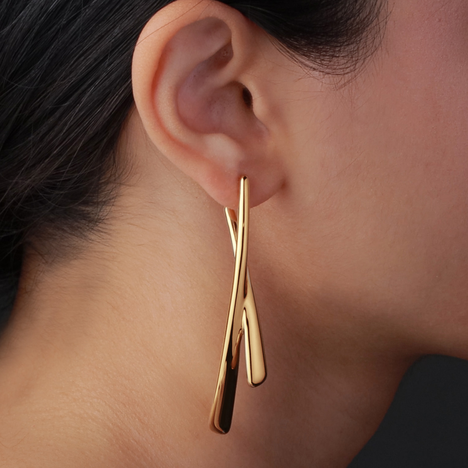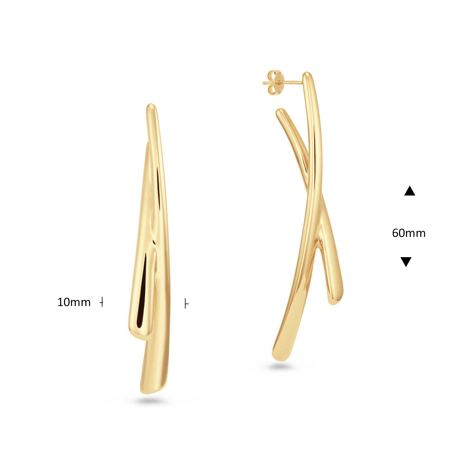Verguld zilveren bijzondere xl oorknoppen. Gekruiste staven. Dit zijn damesoorsieraden van het merk GLOW uit de serie Chunky Chic