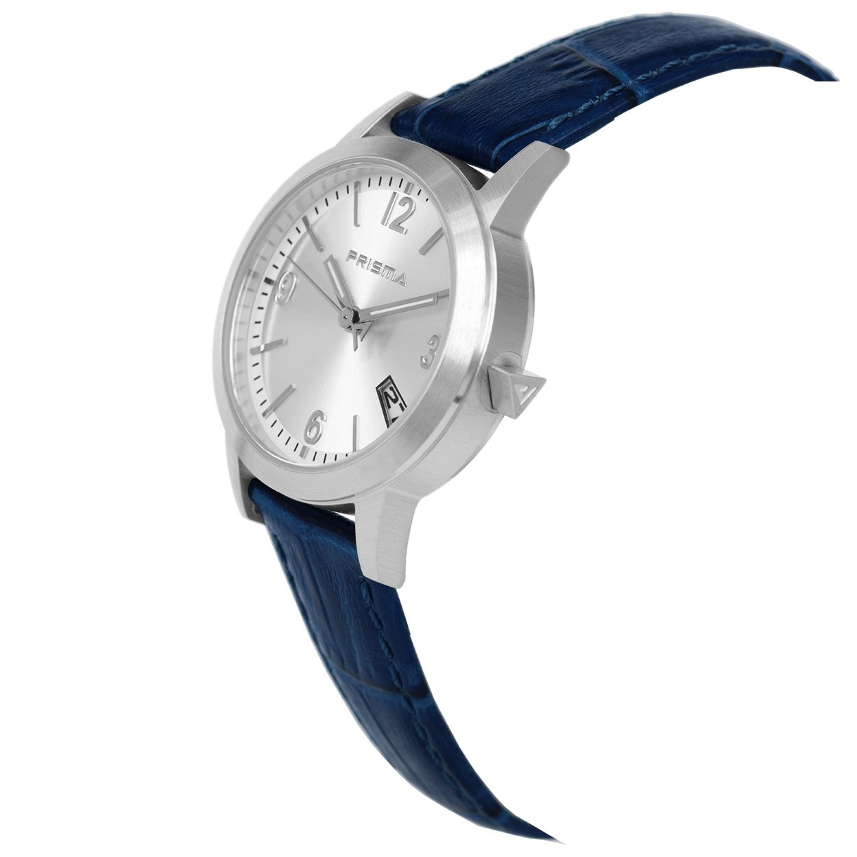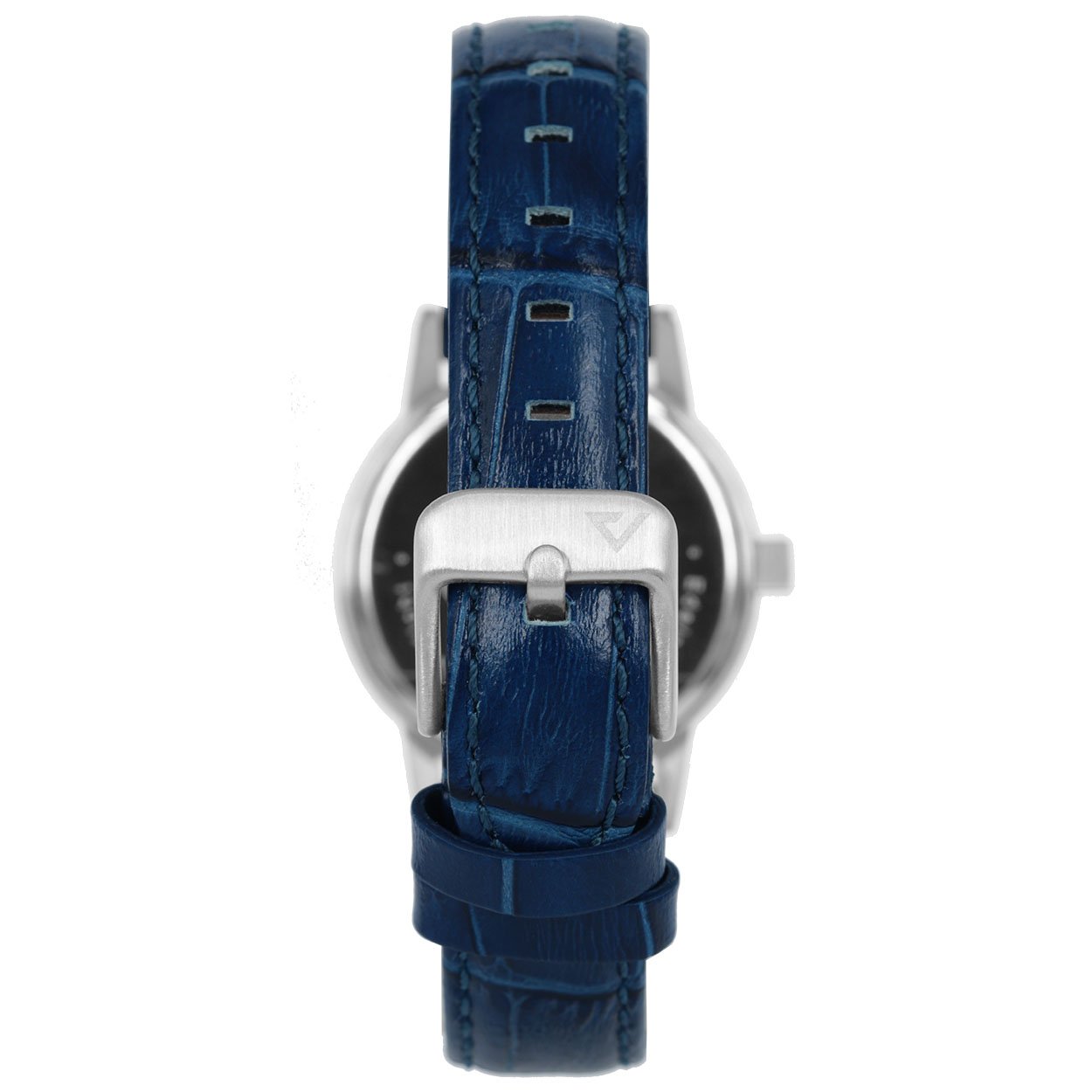 Horlogeband: Blauw leer met  All Stainless Steel gesp