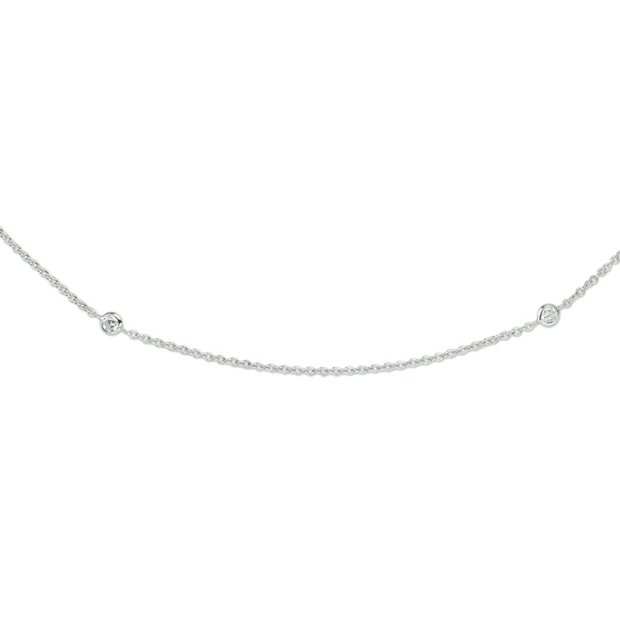 Fijn witgouden schakel collier met Zirkonia en karabijnsluiting. 42-45 cm