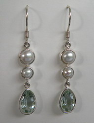 Zilveren oorhangers Parel en Obsidiaan. Echte edelstenen