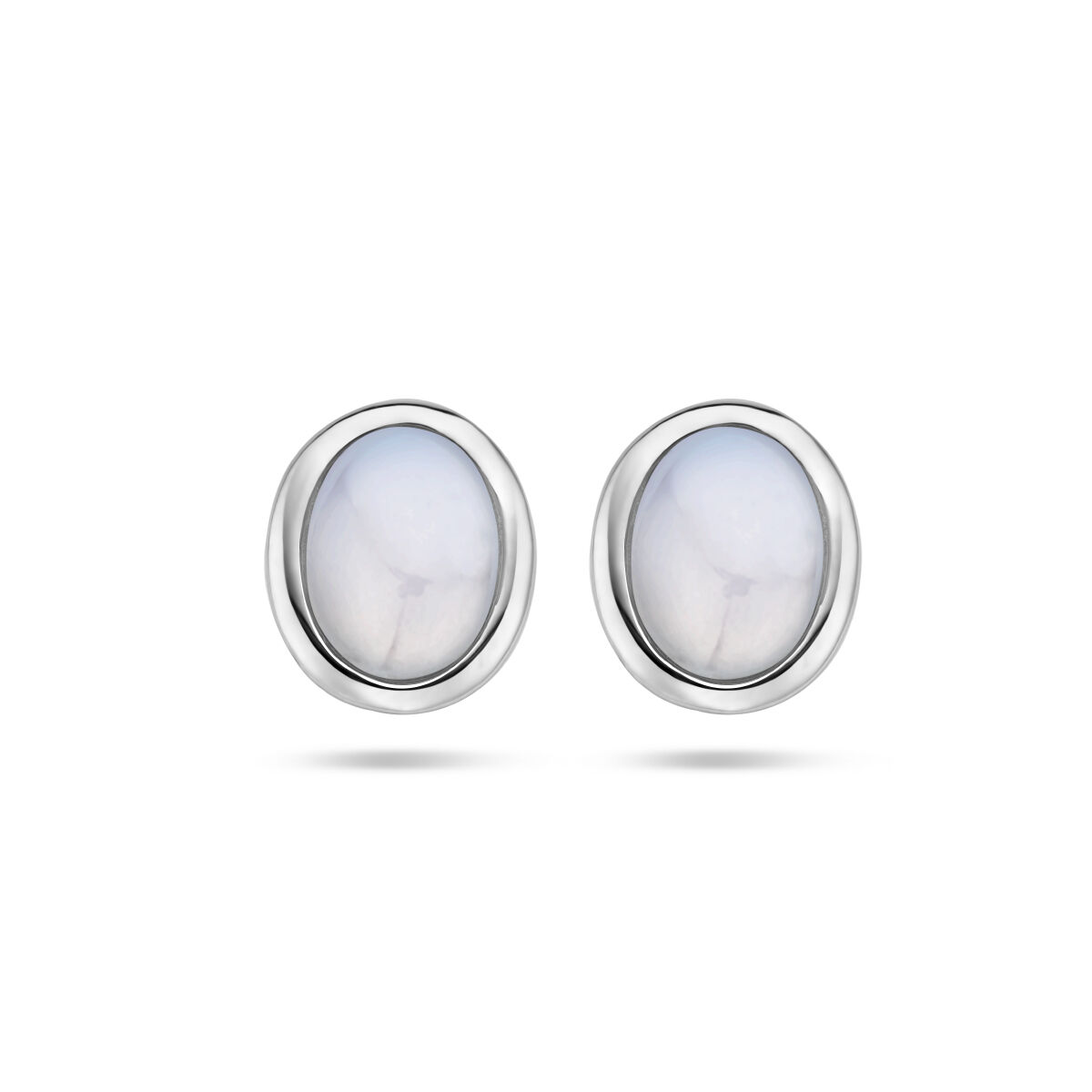 Zilveren oorknoppen Wit Calcedoon 4.86ct 10x8mm
